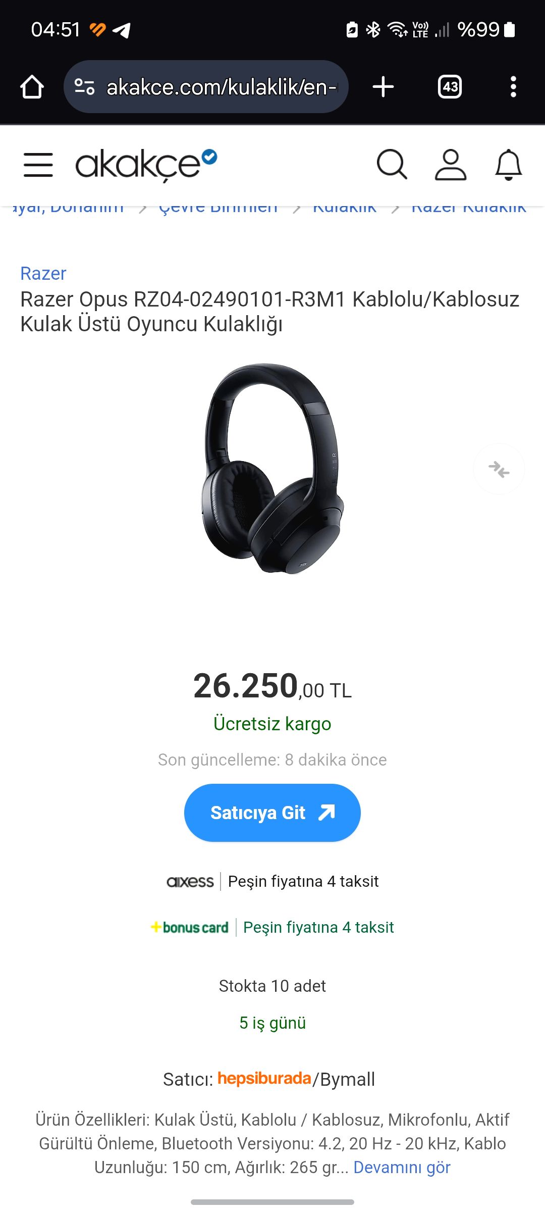 Sıfırı 26.000 TL inanılmaz ucuza bırakıcam 1 yıl garantisi devam etmekte film izlerken filmin içinde gibi hissettiren bir kulaklık 0533 879 9109